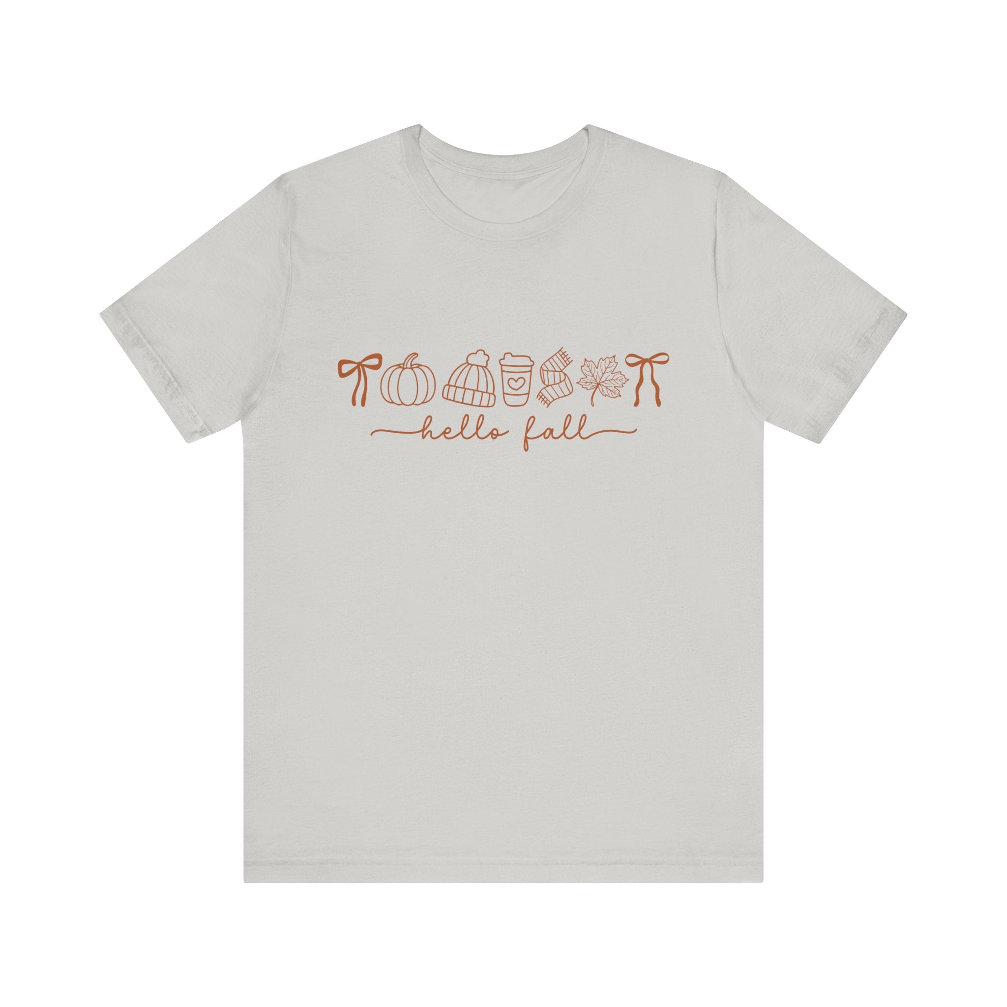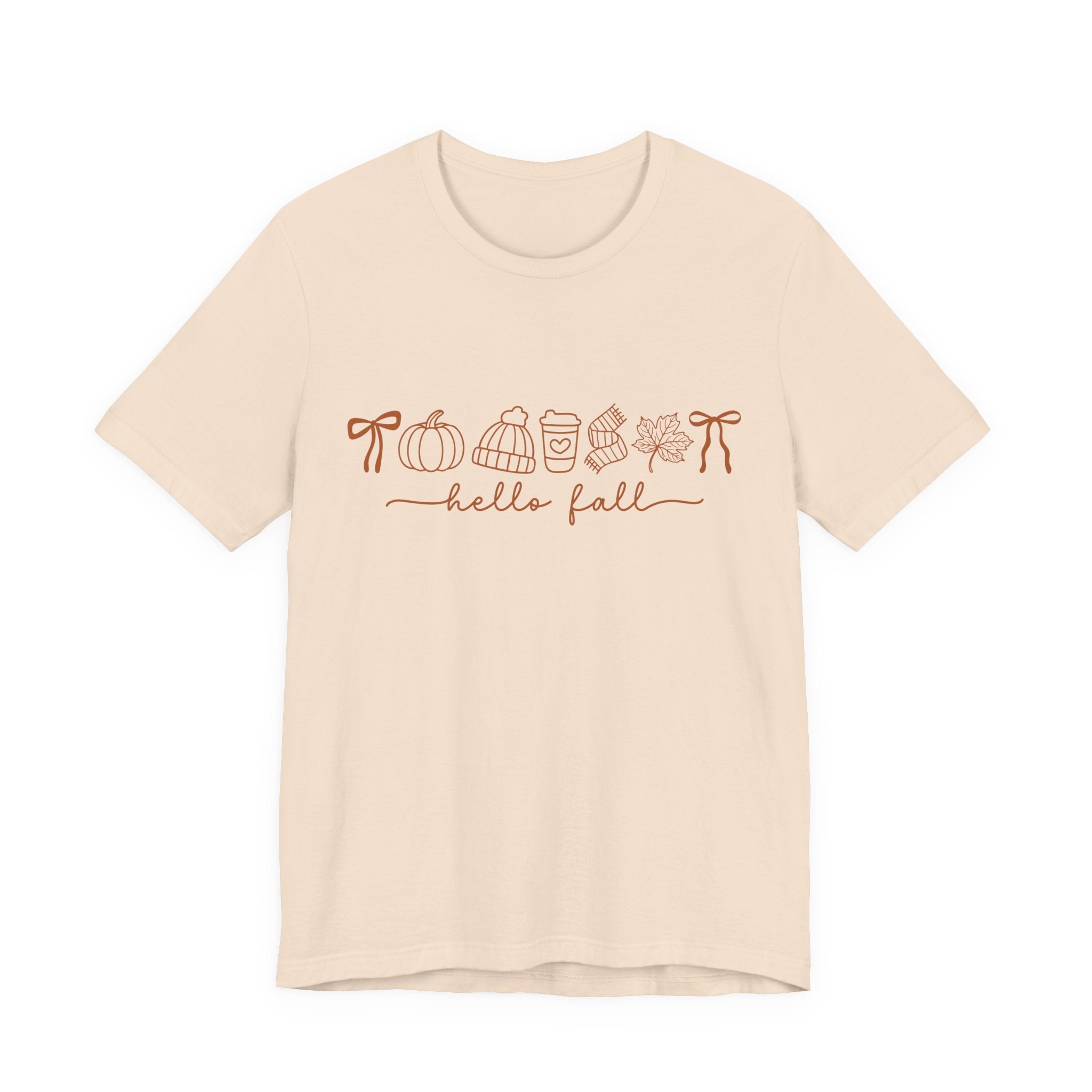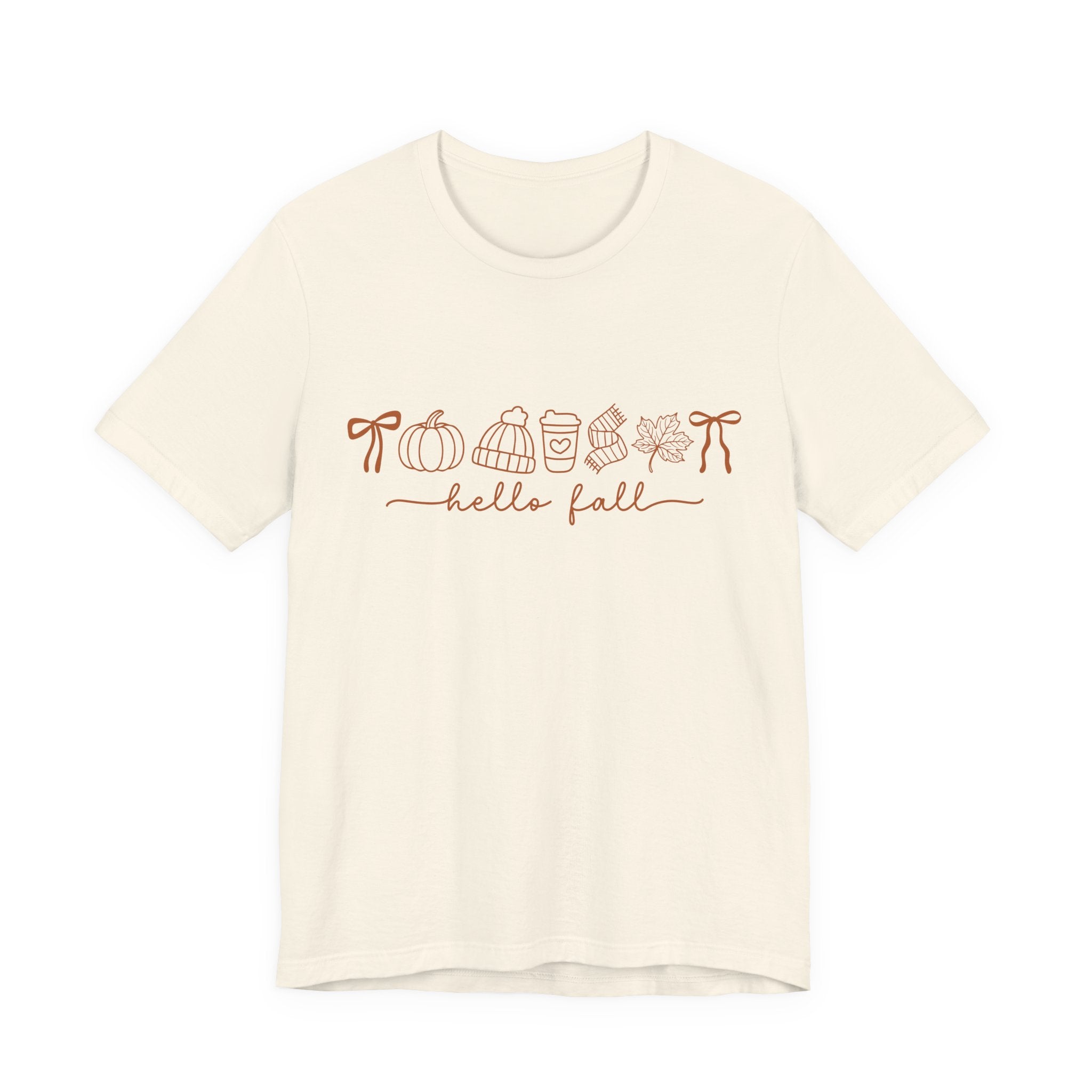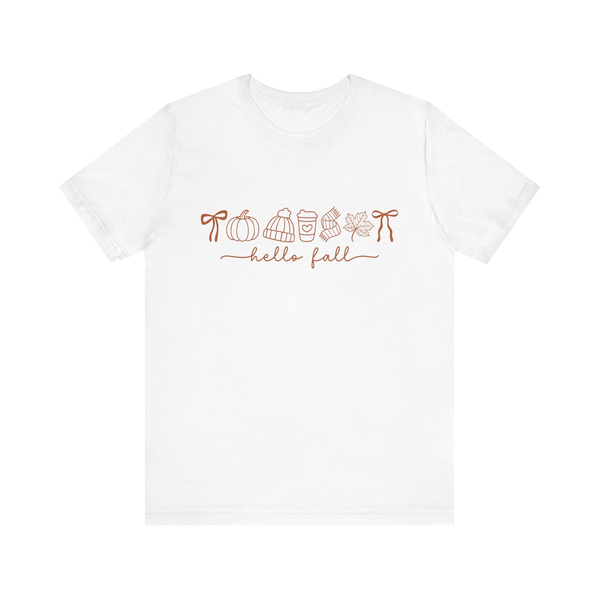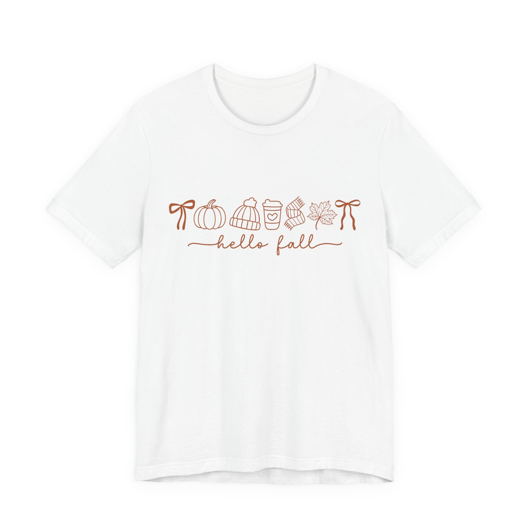 Fall-Themed Unisex Short Sleeve Tee, Cozy Autumn Shirt, Hello Fall Tee, Seasonal Gift, Harvest Celebration Apparel