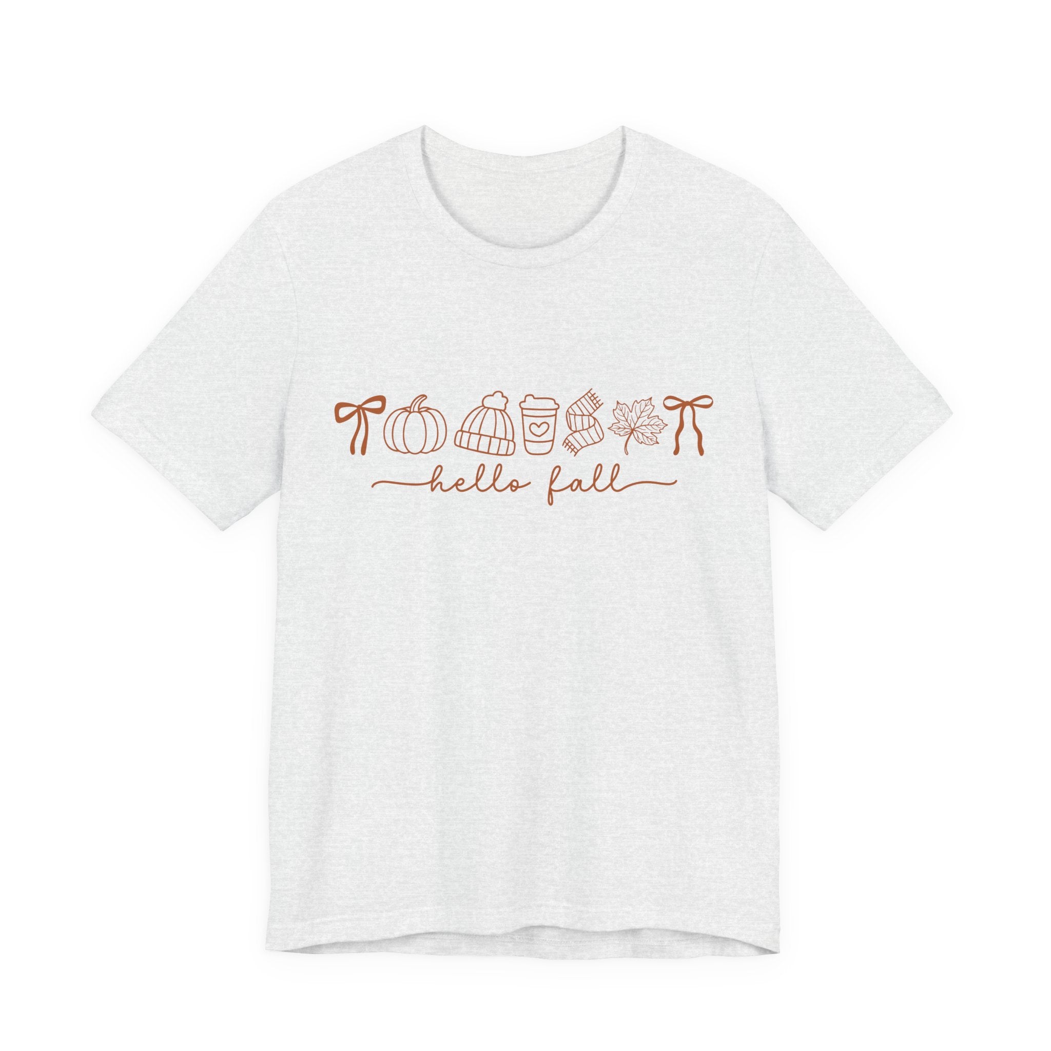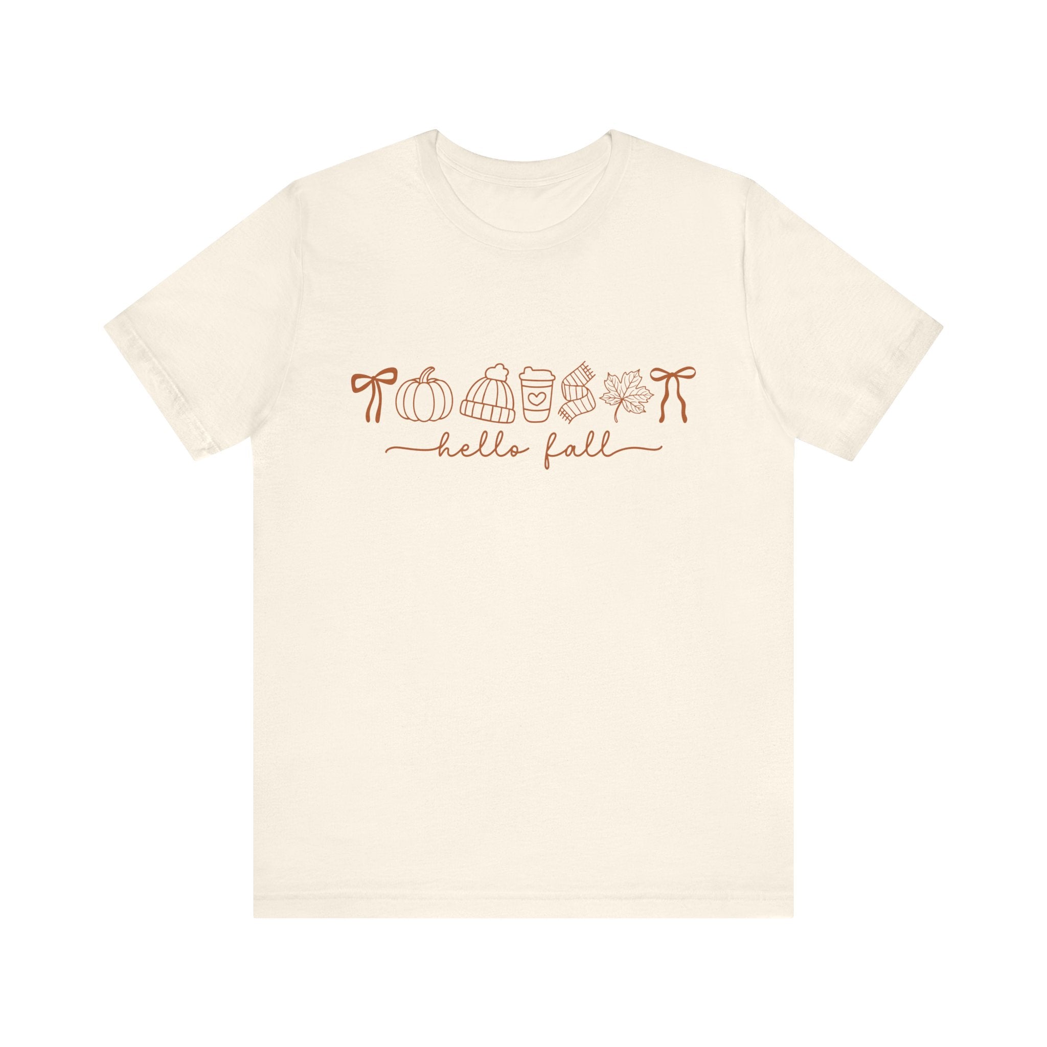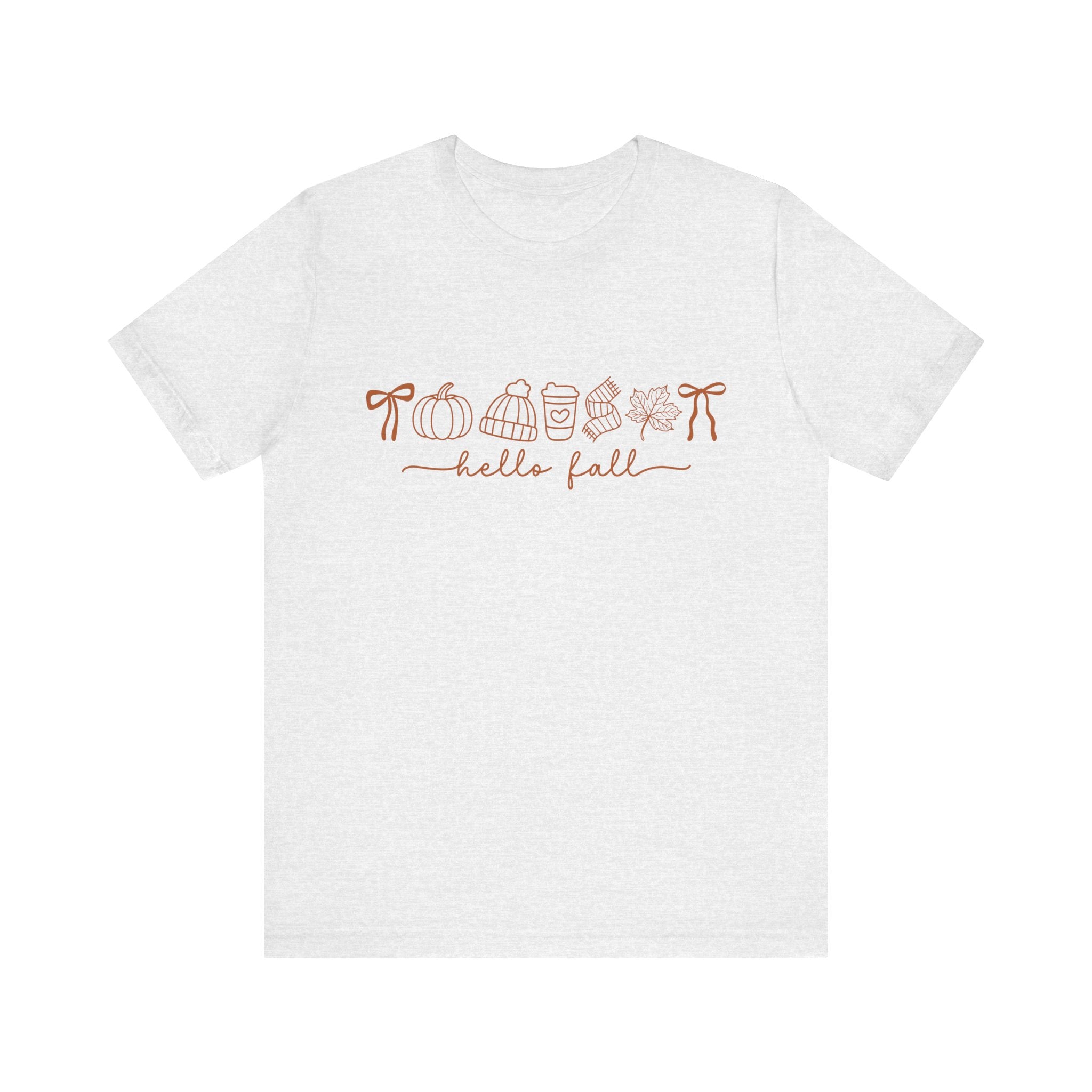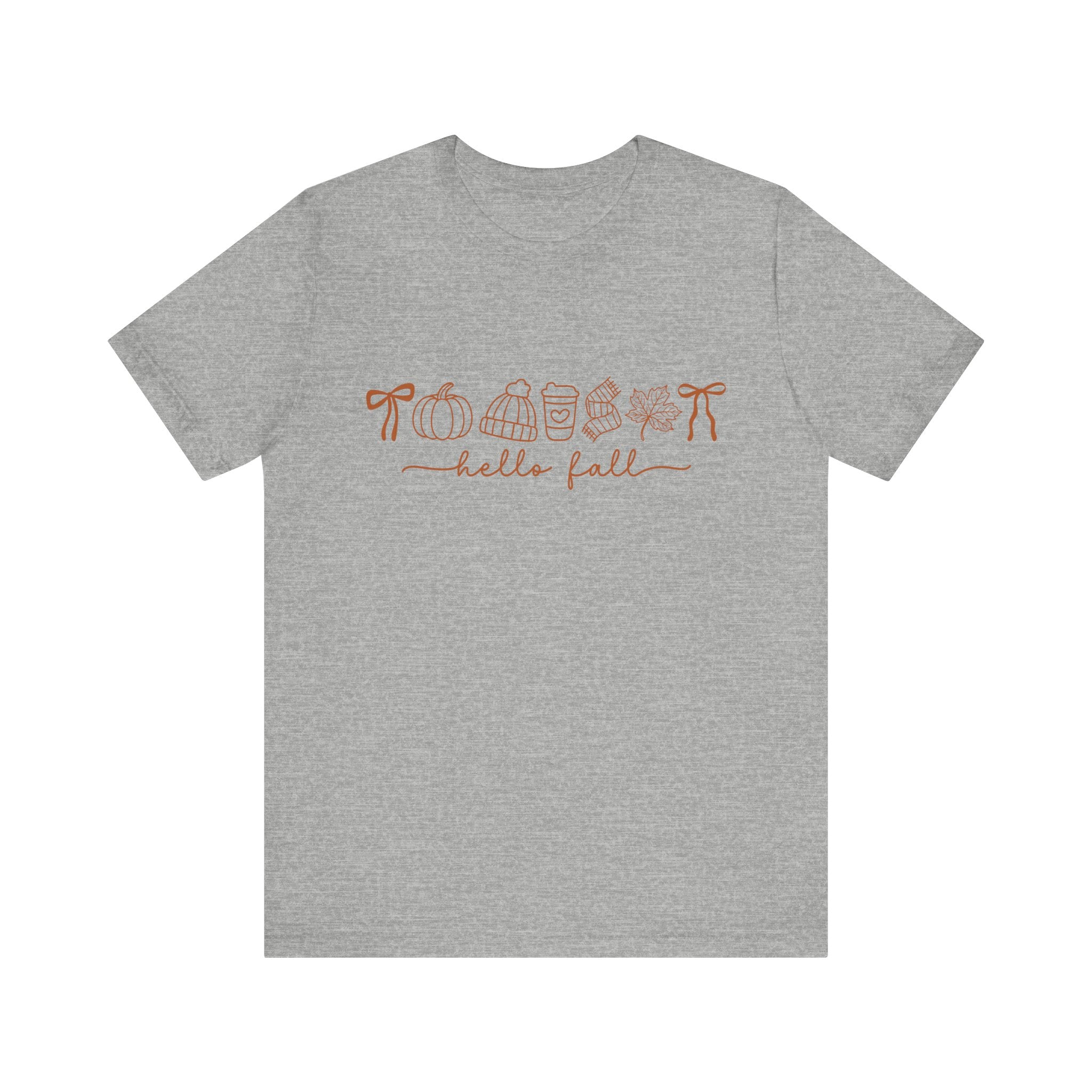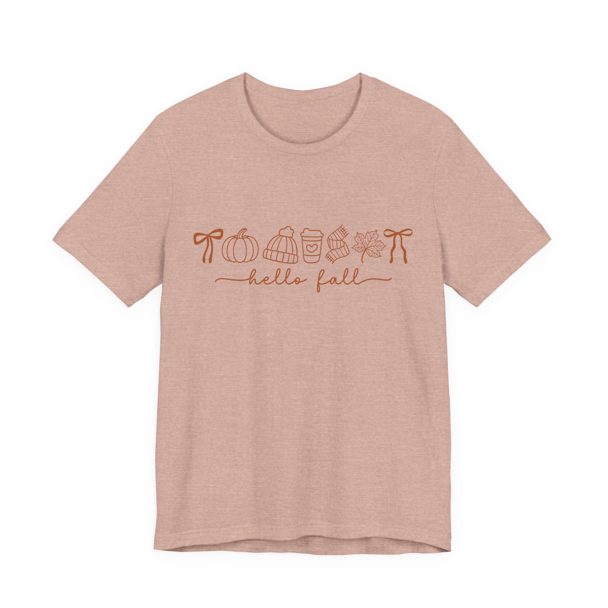 Fall-Themed Unisex Short Sleeve Tee, Cozy Autumn Shirt, Hello Fall Tee, Seasonal Gift, Harvest Celebration Apparel