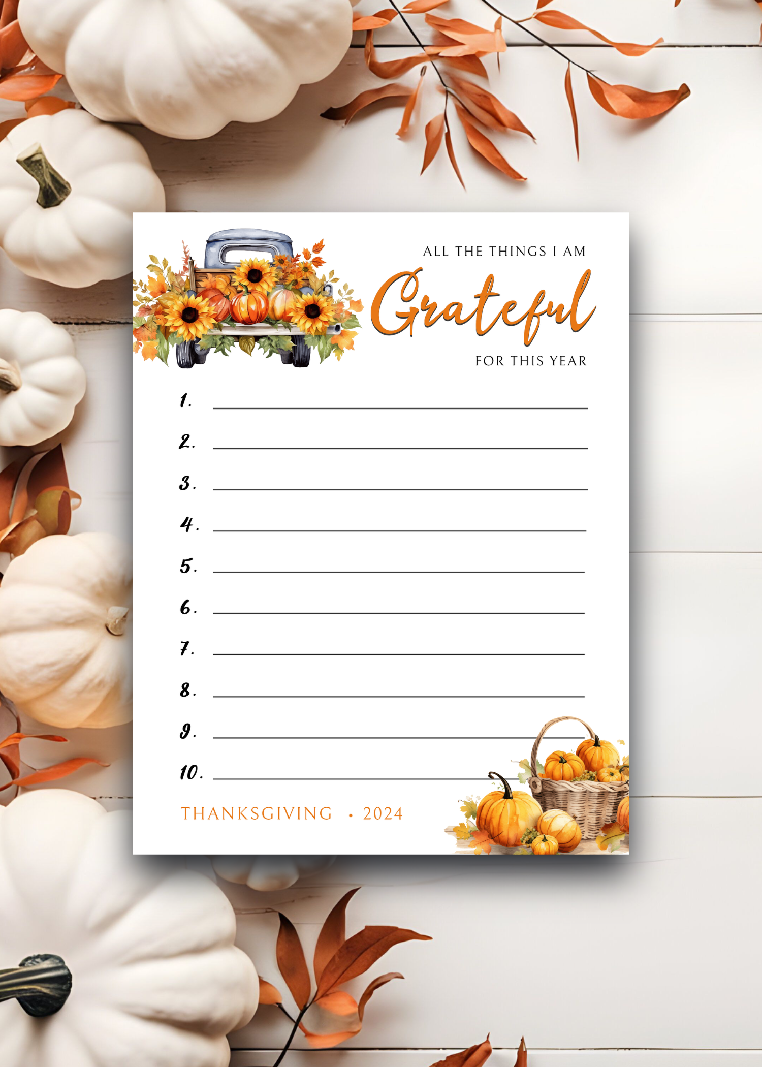 Celebrate the spirit of Thanksgiving with this beautifully designed All the Things I Am Grateful For worksheet! Perfect for reflecting on the blessings in your life, this 8.5 x 11" digital download provides a simple and meaningful way to express gratitude this holiday season.
